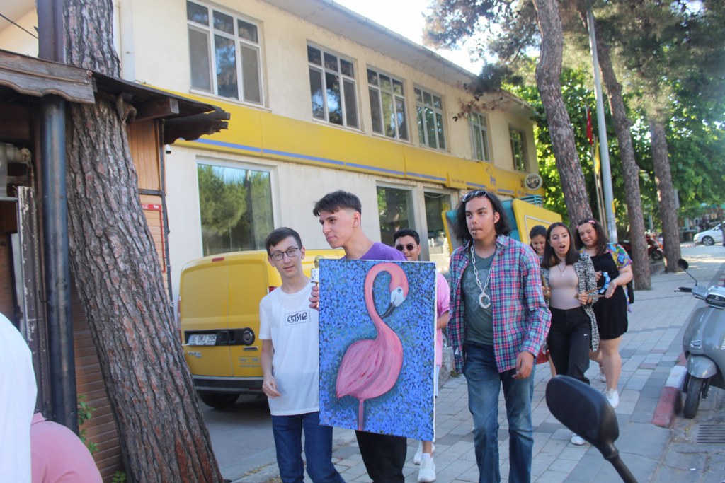 Öğrenciler eğlenceli müzik eşliğinde şehir içinde yürüyerek ada halkını akşam saatlerinde Kent Müzesi Bahçesi’nde gerçekleşecek olan etkinliklerine davet etmişlerdir. Davetlerinin ardında Duygu Yetiş tarafından yönetilen ve Gökçeada Atatürk Anadolu Lisesi Tiyatro Kulübü öğrencilerinin çalıştay süresince konuşulan konularla ilgili esprili bir şekilde doğaçlama şeklinde sergilenen oyunu katılımcılar tarafından büyük bir beğeni ile izlenmiştir.